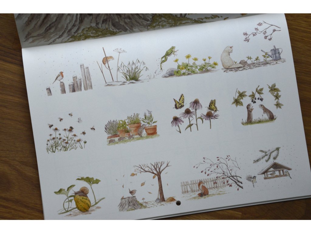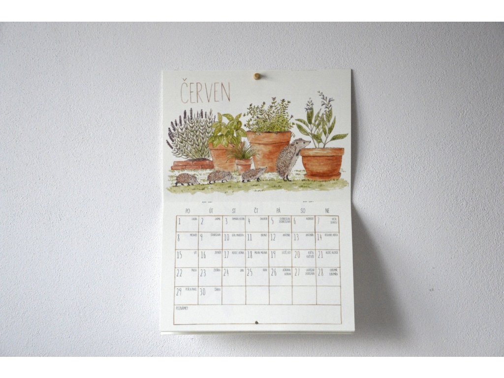 Kalendář s tematickými ilustracemi ke každému měsíci. Obsahuje česká jména i svátky a v každém políčku je dostatek místa na poznámky.