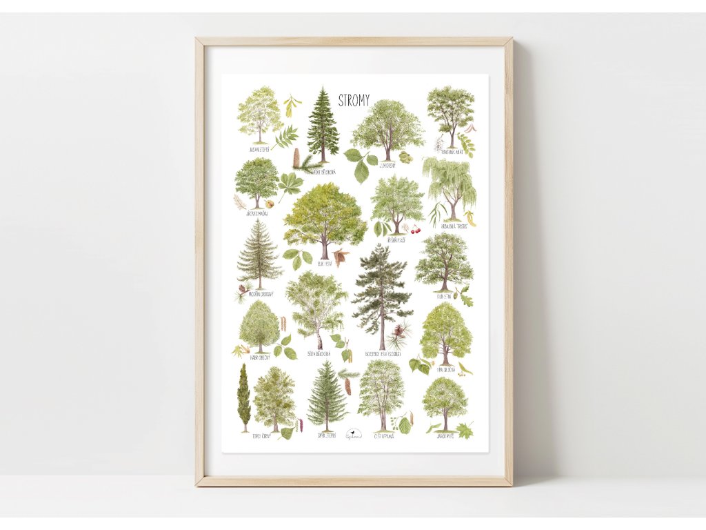Plakát s autorskými ilustracemi nejčastějších stromů Česka a Slovenska. Plakát obsahuje 18 druhů spolu s listem, plodem, případně květem.
